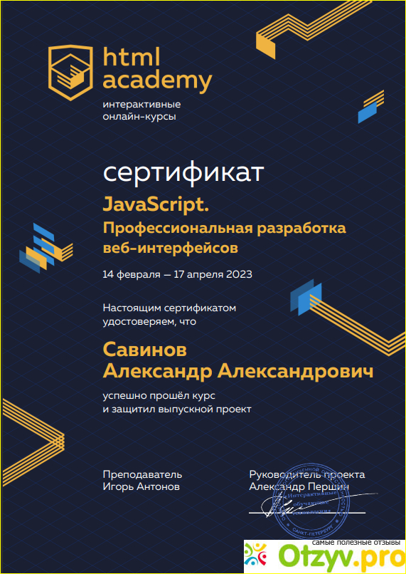 Я ни разу не пожалел о том, что пошёл на интенсив. Очень благодарен всей команде HTML-Academy за столь большую и нужную в наше время работу.
