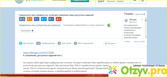 Но если бы не одно болтшое НО. Заданий приходит очень мало, а после вывода первых средств их становится еще меньше. По расценкам видно что сервис львиную долю стоимости заказов берет себе и кстати одинаковые по описанию задания могут приходить с разной стоимостью. Еще на заработок и количество получаемых вами платных заданий влияет прикрепленные социальные сети. Чем больше тем лучше. Еще можно получать прибыль с рефералов, но этим уже никого не удивишь. Приглашая по ссылке своей можно указывать стоимость за выполнение но опять же приличный процент от этой суммы будет у вас забирать сервис. Вывод: сайт не обман, но и заработать на нем у вас не получится ввиду количества поступаемых на выполнение заданий и более расторопных пользователей, которые одно задание выполняют один раз но подтверждают выполнение по раза 3-4. Так что проходите мимо этого сайта. Заработать у вас не получится больше 300 рублей в месяц, а это не деньги. Есть способы и лучше.
