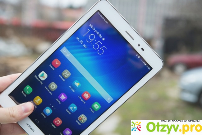 Первое, что замечаешь, когда берешь его в руку, это большие рамки вокруг дисплея, это неприятно. Сейчас, чам дороже аппарат, тем тоньше рамки. Дисплей маленький, всего 7 дюймов. Это указано в названии модели. Huawei MediaPad T1 "7" 3g. Есть модель, которая имеет Восьмидюймовый дисплей, название соответствует, и она дешевле примерно на тысячу рублей, чем этот. Так зачем платить больше? У меня конечно же был в руках планшет 10 дюймов, и это оптимальный размер, зато 7 дюймов помещается в самую маленькую сумочку, а парни могут его в кармане носить. Но, для комфортного интернет - серфинга таких размеров недостаточно. Даже 8 дюймов не порадует. Планшет собран в Китае, конечно же, сборка неплохая. Вполне стильный девайс, сам корпус отпечатки собирает, но не сильно. И мне достался белого цвета, на нём отпечатки видны меньше, чем на чёрном. Коробка выглядит дёшево, но ведь планшет и есть самый, что есть бюджетник. Заводской пленки на экране нету, большой минус, планшет лежит в плёночном чехле, который сразу выкидывается, я бы присмотрелся к вариантам с заводской плёнкой. На задней крышке наклеены какие-то непонятные штрих-коды, то ли imei, то ли ещё что то, но это смотрится плохо. Имеется две камеры, качества не выше среднего. Слоты под симки и флешки спрятаны под заглушкой. Вход для наушников сверху, для usb кабеля снизу. Кнопки регулировки громкости и включения находятся с одной (правой) стороны, что для меня лично неудобно, на прошлом планшете от lenovo они были по разные стороны, и мне так казалось лучше.