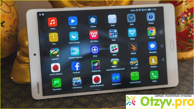 Работает он на восьми ядерном процессоре, с операционной системой Андроид 7.0, в работе за всё время показал себя с самой лучшей стороны, не подвисал, не глючил, реагирует быстро, сенсор отзывчивый, что очень порадовало. Также и сканер отпечатка пальца, на касания реагирует мгновенно. Интересное решение производителя, сделать сразу 4 динамика, два из которых он разместил на верхнем торце, а ещё два на нижнем торце, что обеспечивает хорошее качество звука, который не закрывается, если планшет находится в чехле.