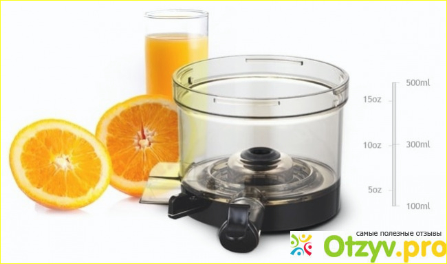 Есть резервуар для сока, емкостью в 0,5 литров.