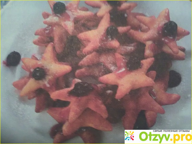 4. Готовые звёздочки сложить по 2 штучки вместе, прослаивая их ягодным джемом. Выложить на тарелку и украсить ягодным джемом и посыпать сахарной пудрой.