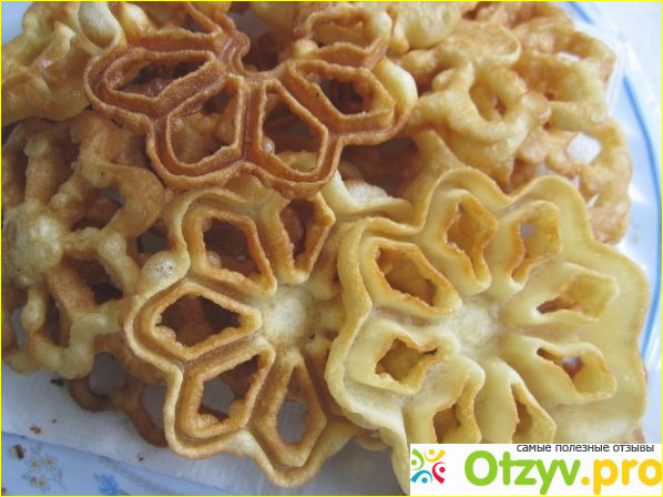 Очень красивое печенье получается в виде снежинок и цветочков. Часто я балую уже своих деток таким печеньем. Готовить такой хворост очень просто, но есть пару нюансов и если их не соблюдать, то результат будет плачевным. В интернете на разных форумах можно наблюдать то, что не у всех получается испечь хворост с помощью формочек. У многих тесто сильно прилипает к формочкам и его невозможно отодрать. Люди грешат на рецепт или на себя.)) Вот решила я поделиться своим рецептом и своими рекомендациями по выпечке хвороста в этом отзыве.