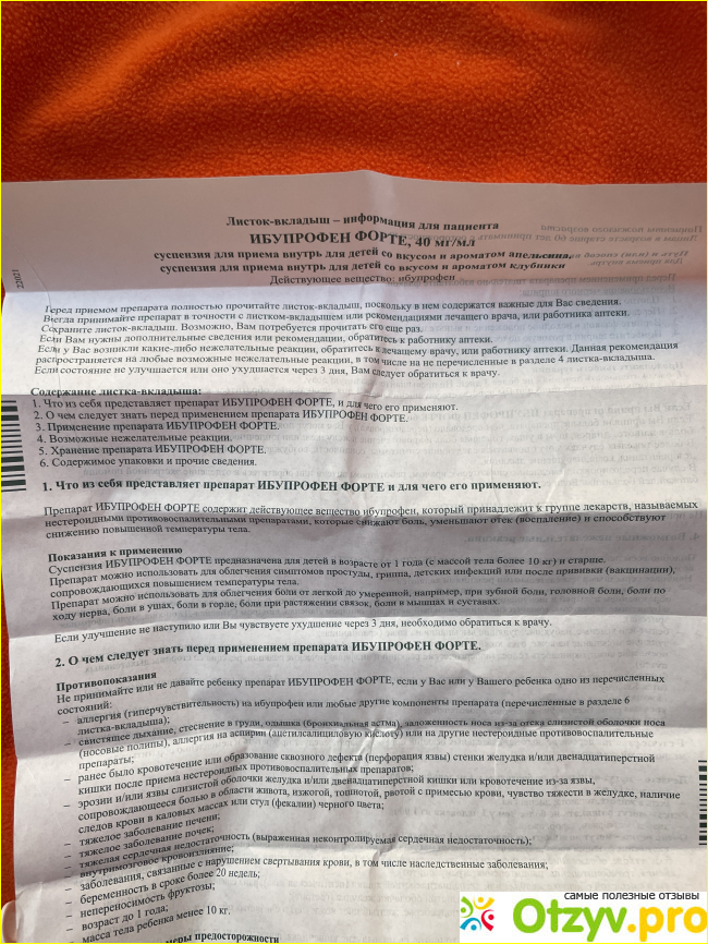 Ибупрофен форте имеет приятный фруктовый вкус, у нас вот такой, со вкусом апельсина. Что примечательно в нем не содержится сахара и красителей, но есть некоторые подсластители.