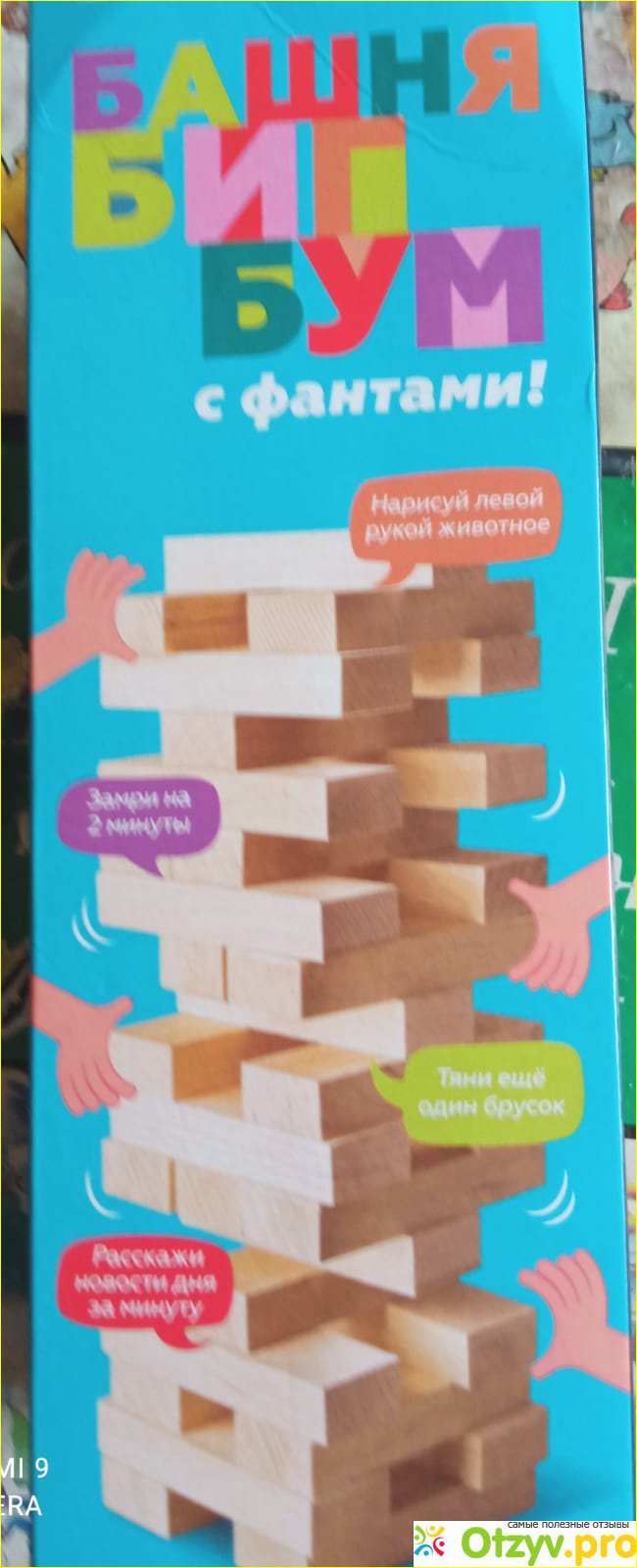 В памятке указан фант, который необходимо выполнить. Суть состоит в том, вытащить одно чудо из строения, но башенка, чтобы не рухнула. Проигрывает тот, кто разрушил ее. Эта игрушка, поможет узнать, кто самый ловкий, внимательный, невозмутимый в доме. Шестнадцать смешных, оригинальных заданий скучать не дадут никому.