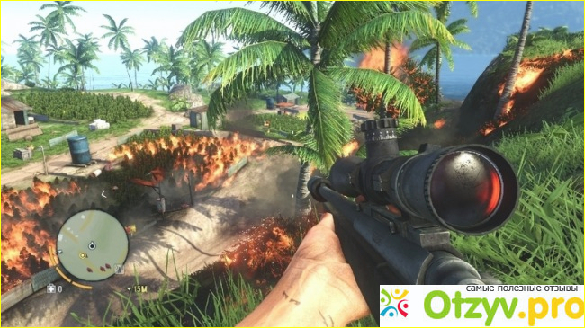 Сюжет претендует на оригинальность, свобода действий, разрушаемый и живой мир, вполне сообразительные противники, неплохая графика (хотя до Кризиса, все же не дотягивает), и главное - чертовски обаятельный Ваас! Тем, кто старался над переводом игры - премию выписывать нужно. Переведено с душой, и это не только матов касается, маты матами, но перевод просто шикарен, он помогает проникнуться переживанием главного героя на все 100%. Это вам не Дюк Нюкем с его бесстрастным голосом Терминатора, и эмоциями на уровне холодильника... Так и хочется сказать "верю! верю всему что происходит на экране". Еще приятно удивило внимание к мелочам в игре. Загорелся? Поджег траву вокруг себя... Врезался на джипе в дерево? вынес головой лобовое стекло и обнял зубами торпеду... Упал с высоты? во время "лечения" вправляешь сломаную руку... Даже такая мелочь: во время езды на автомобиле, вытягивает с руки пулю (осколок), выплевывает ее в лобовое стекло, пуля ударяется о стекло и падает обратно в салон, если стекло выбито, пуля вылетает на улицу... мелочь скажете вы, а вот благодаря таким мелочам, создается приятное впечатление об игре. Ибо главное - в деталях. Имхо, маст плей. Видимо цифра 3 удачная в играх, Кризис 2 был не очень, Кризис 3 - просто ураган (и сюжет и все остальное), так же и ФарКрай - вторая часть (имхо) была провалом, но в третьей Убисофт восстановил доброе имя серии. Короче играйте, не пожалеете. Добротная игра.