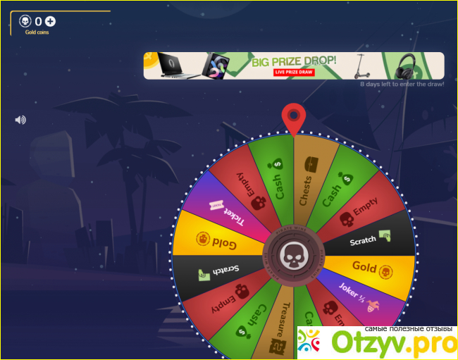 Работая на одном из крауд-маркетинговых проектах, мне поступило задание зарегистрироваться на сайте. Оказалось, что это сайт из разряда азартных игор. Суть такова, что каждый час можно крутить колесо и забирать золото пиратов.