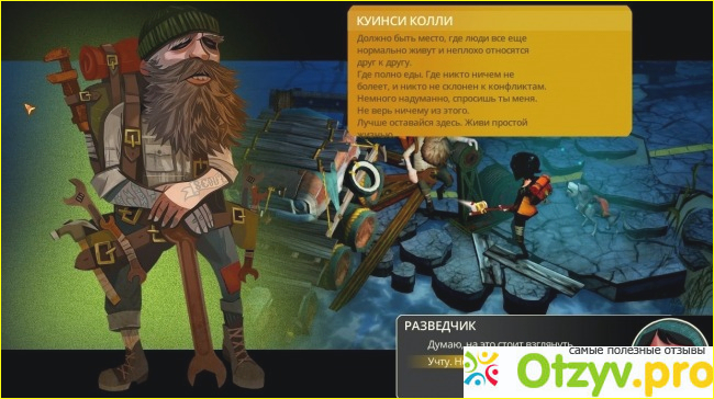 Диалоги обрываются через несколько строчек, так что зачастую ничего не понятно. Хотя никакого особого смысла они и не несет. Такие обрывки информации и в рюкзаке, и в инструкциях, и в любых текстах игры попадаются. Вроде пока что не мешают играть, но неприятно.