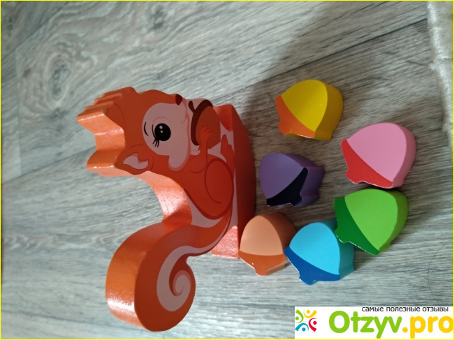 Даже взрослому ее собрать труднее, это факт. Блоки тут орешки, разукрашенные в различные цвета. Дочка ставит на пол белочку, а дальше начинается интересное, то свалятся орешки, то сама белочка упадет, ребенок начинает нервничать и отодвигает игру куда подальше. Что интересно, она все равно время от времени к ней возвращается. Видимо, что-то притягивает. Правда, порой берем ее и будто кормит орешками, делая вид, что по-другому в эту игру и не играют.
