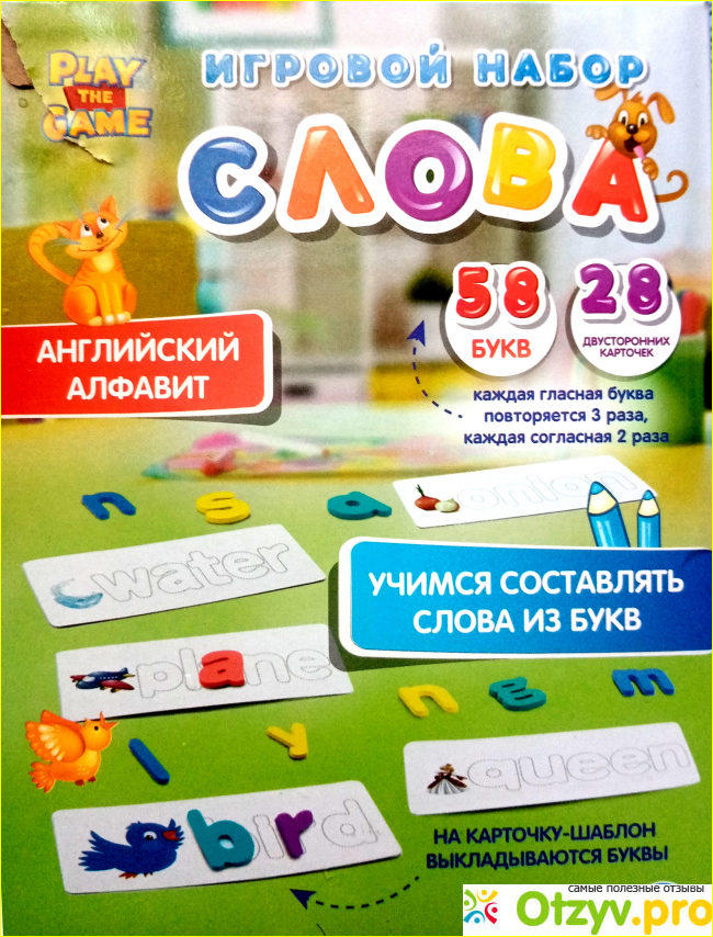 На упаковке видно, как учиться по этим карточкам составлять слова. Буквы просто выкладываются на шаблон. Написано, сколько там гласных букв и сколько согласных.