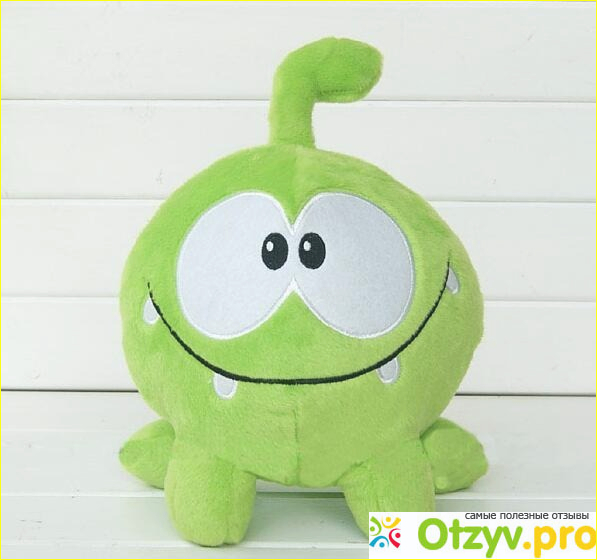 Сама по себе игрушка - это герой популярной игры Cut the Rope, в которой главный герой - Ам-ням ест конфеты. Фигурка и представляет собой героя игры с пластмассовыми конфетками внутри.