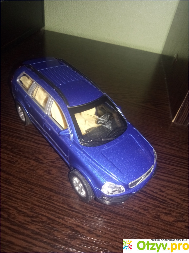 Цвет Volvo XC90 синий, он добротно смотрится и совершенно не видно на нем пыли и грязи. Ребенок играет уже на протяжении недели и мы родители наблюдаем и тоже не прочь покатать данную модель.