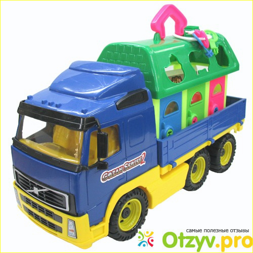 Игрушка интересна тем, что это Большой камаз и на нем домик. Домик развивающий.