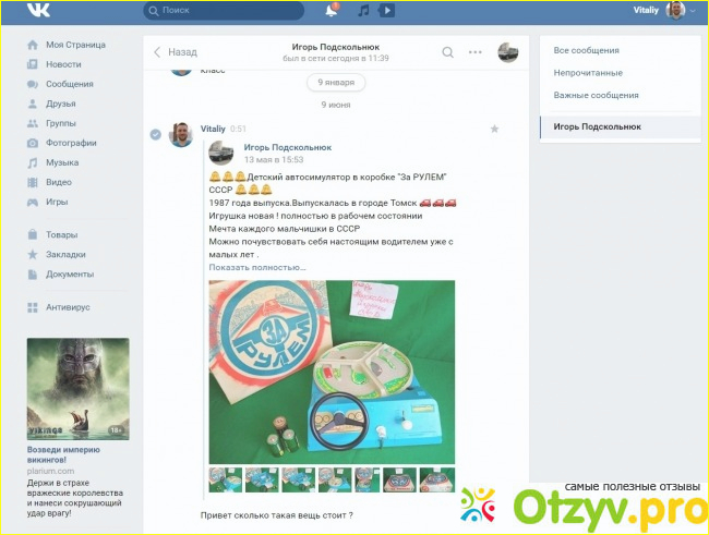 МОЯ ИСТОРИЯ: Меня зовут Виталий Николаевич я купил у Игоря Подскольника ИГРУ ЗА РУЛЁМ, на его страничке в КОНТАКТЕ ПО ФОТО она голубого цвета и в идеальном состоянии! В переписке он говорил что ИГРА НОВАЯ!