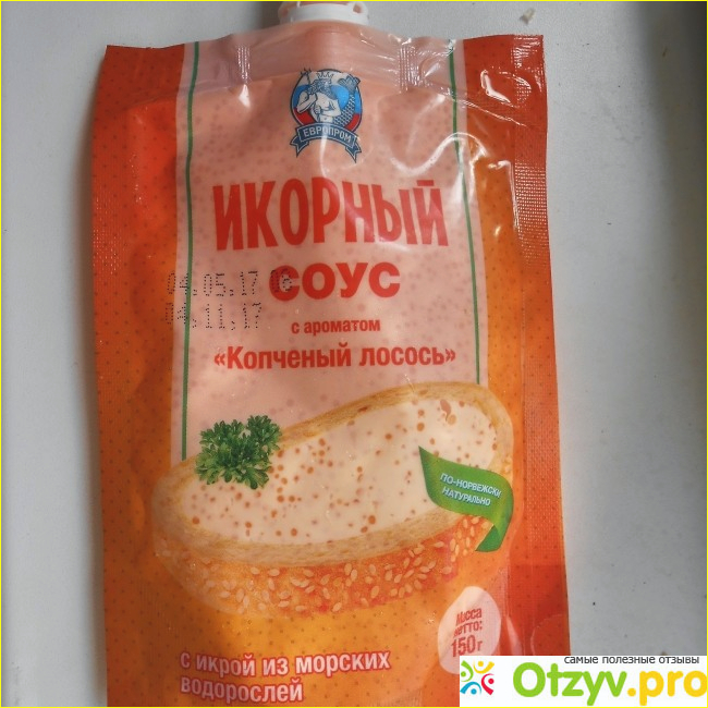 Порой нам хочется какого-то разнообразия. И вот недавно я купила на пробу Икорный соус Европром с ароматом «Копченый лосось», который изготавливается в г. Санкт-Петербург. Это достаточно оригинальный соус, и, наверное, сфера его применения не так широка, как у более привычного нам всем майонеза, тем не менее, он прекрасно подходит для бутербродов, домашней пиццы, заправки рыбных салатов и как собственно соус к самым различным гарнирам.