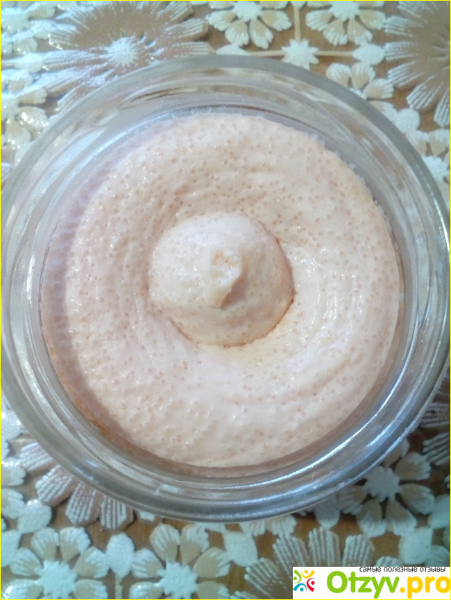 По запаху и вкусу такая икра нас устраивает: в меру солёная, с приятным вкусом икры мойвы и креветки с молочным оттенком. Чувствуются и маленькие икринки мойвы, поскрипывающие при пережёвывании, и крошечные кусочки креветки. Консистенция икры тоже нормальная: икра средней густоты, благодаря растительному маслу и картофельному крахмалу, пластичная, хорошо намазывается на хлеб.