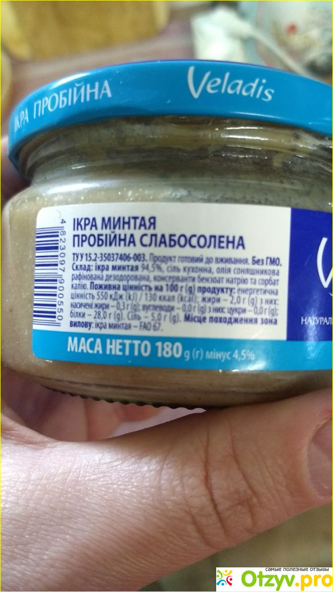 Икру минтая пробойную слабосоленую от торговой марки Veladis я покупала уже несколько раз. Иногда хочется бутербродик с солёной икрой и со сладким чаем. Тогда достаю баночку продукта из холодильника и намазываю содержимое на хлеб.