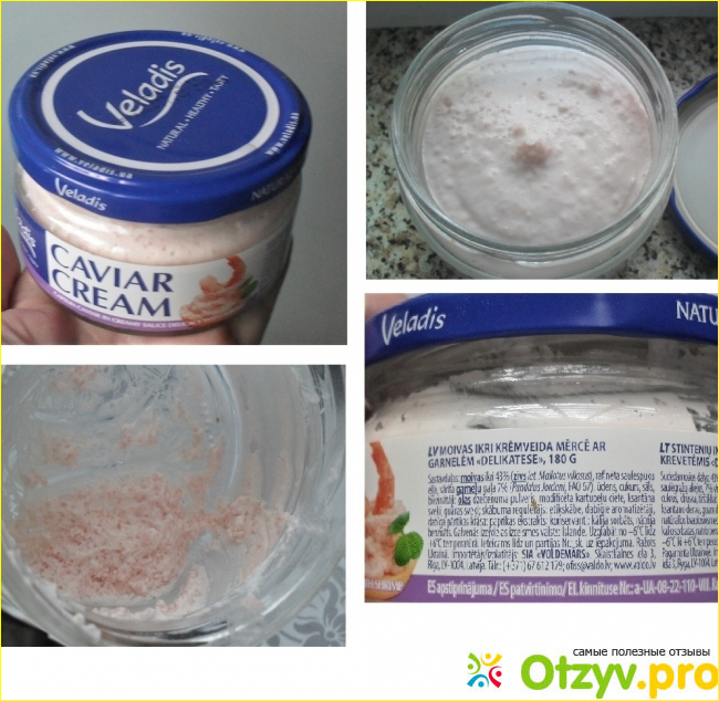 Это балтийская версия "Икры мойвы в сливочном соусе с креветками". Информация о составе и калорийности на латышском, эстонском и литовском языках.