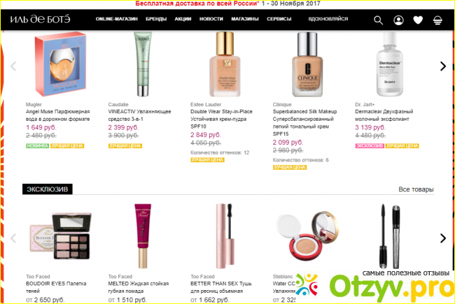 Также ещё хочу рассказать что Иль де Ботэ не только есть магазины по всем городам России, но есть свой интернет-магазин. Где можно спокойно не выходя из дома выбрать любой понравившийся вам товар и заказать. Можно заказать доставку куда вам будет удобно или самой приехать и забрать. Я так несколько раз сделала, мне очень понравилось. Это, во-первых, очень сильно экономит время, так как бывает некогда ездить по магазинам. А на сайте выбрала всё что нужно исделалазаказ. И самое важное для меня, это очень удобно пользоваться интернет-магазином Иль де Ботэ. На сайте всё очень просто и понятно, можно посмотреть цены и знать, какие проходят акции и много ещё полезной информации можно прочитать. Я рекомендую Вам посетить сайт интернет магазина Иль де Ботэ.