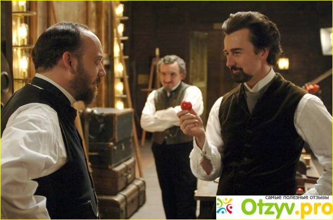 Первое, на что обращаешь внимание — сценарий. Если вкратце, то он подкачал. Повествование вышло немного затянутым, перегружая лишними подробностями зрителя. В частности это касается любовной линии, которая прописана не очень хорошо. Понятное дело, создателям хотелось выдать драму на этом, но реализация как-то подкачала, от чего выглядело притянуто, неправдоподобно. Постельная сцена с главными героями вообще похоже вставлена для растягивания хронометража, поскольку смысла её показывать не вижу. Лучше бы вообще без всей этой любви обошлись, сделав упор больше на трюках иллюзиониста и механизмах исполнения.