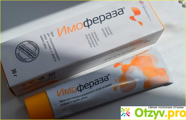 Как видно из состава, Имофераза это не просто обычный косметический крем, но превосходное лекарственное средство помогающий устранить такие неприятные и некрасивые проблемы как постакне (ямочки после угревой сыпи), рубцы, шрамы, порезы, устраняет шелушение, чувство стянутости, убирает отечность, увлажняет.