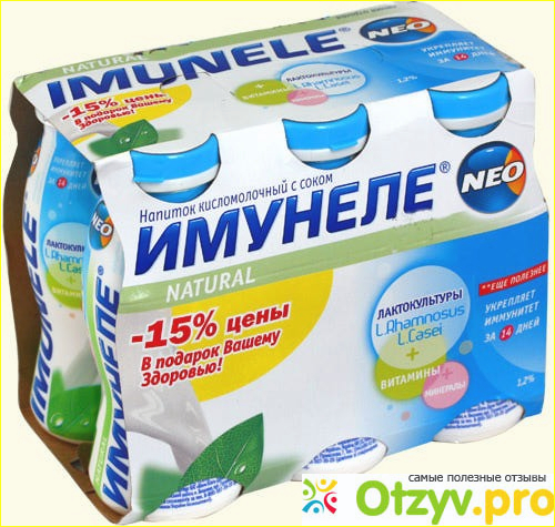 Иммунеле является кисломолочным напитком. Я его открыла для себя сравнительно недавно и мне он очень понравился по вкусу. Но дело даже тут не во вкусе, а в том, что содержит он полезные бактерии, которые просто необходимы кишечнику.