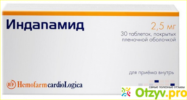 Состав: индапамид, крахмал прежелатинзированный, МКЦ, кремния диоксид коллоидный, магния стеарт, гипромеллоза, макрогол, лактозы моногидрат, титана диоксид.