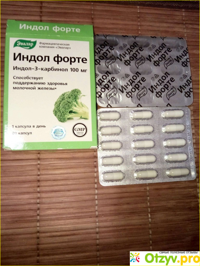 Как раз Индол и является такой добавкой. которая была выпущена производителей для поддержания и восполнения репродуктивных функций у женщины. Средство продается в довольно симпатичной коробочке на которой спереди нарисована капуста брокколи. Она там изображена не случайно, так как этот компонент находится в таблетках.