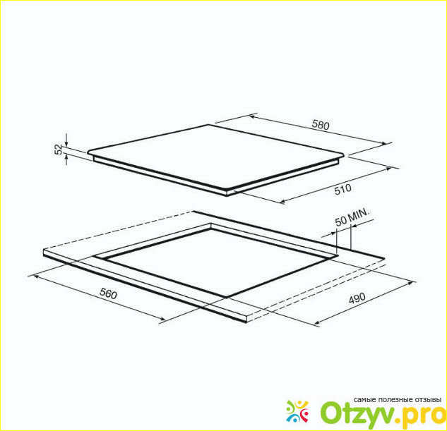 Высота Индукционной варочной поверхности Smeg SIM561B равна пятидесяти четырем миллиметрам,