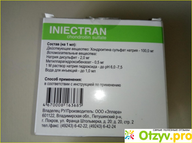 К сожалению, одними хондропротекторами заболевания и дегенеративные разрушения не помочь, так как здесь необходим комплексный подход. Да и сам препарат Инъектран содержит в своем составе всего лишь один компонент: хондроитина сульфат в дозировке по 100 мг. Вот если бы в составе содержались оба активных вещества, то и эффективность от препарата была бы намного выше, так как именно они оба должны лечить и воздействовать на суставы и хрящи.