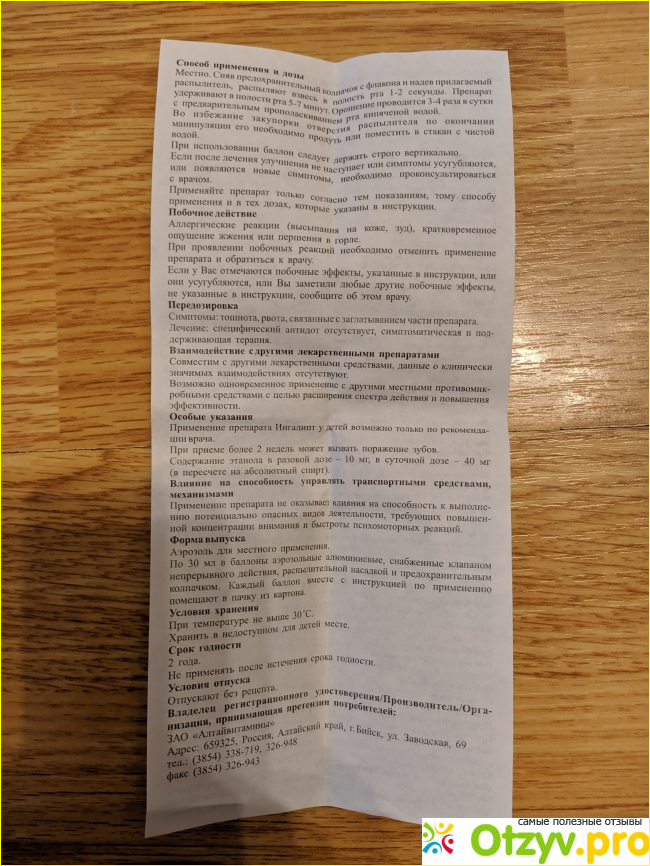 Так же пробовала Ингалипт от боли в левой стороне гортани, не знаю, как правильно это называется по научному. Правая не болела. Никакого положительного эффекта я не ощущала. При хроническом тонзиллите так же эффекта не увидела. Пшикала моей дочке.