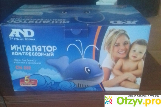 Прошлась по ближайшим аптекам, посмотрела ингаляторы и цены на них. Приглянулся мне очаровательный кит производства Японской фирмы A&D. По цене был одним из недорогих. Проработав большую часть своего трудоспособного возраста в фирмах занимающихся бытовой техникой, очень уважаю качество японских производителей, поэтому не раздумывая взяла его. Продавец предупредил, что он громко шумит, я попросила показать. Не сказала бы что очень громко- ребенка не пугает и этого, как мне кажется, достаточно.