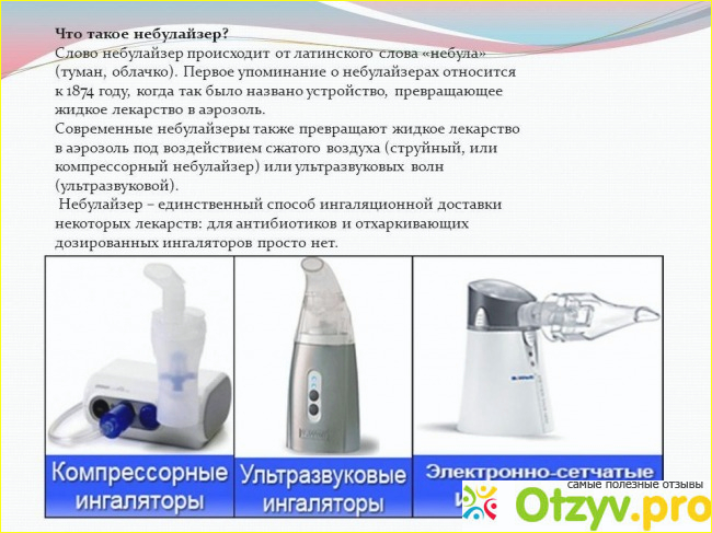 Какой из приборов выбрать-дело каждого. Мы приобрели достаточно лёгкий, компактный ирригатор, которого удобно было б брать и с собой в поездки. Работает практически бесшумно, не напрягает, наоборот, получаем расслабление от его воздействия. Кстати , ирригаторы также бывают разных видов: паровой, компрессионный, ультразвуковой, меш-ирригатор. Мы взяли компрессионный и очень довольны. На протяжении всего сеанса ингаляции происходит непрерывная подача лекарственного средства, расход которого минимален.