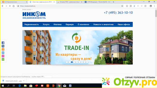 Хочется сказать пару слов про ипотеку. Естественно, риэлторская фирма, да еще такая крупная, помогает с ипотекой. Причем документы подаются сразу в несколько кредитных учреждений, потом останется выбрать то из них, которое предложит самые выгодные условия и минимальный размер ставки. Есть еще один приятный бонус от партнеров Инком-Недвижимость - клиенты этого риэлторского агенства имеют возможность получить более привлекательные условия по ипотечному кредитованию от банков-партнеров, среди которых такие крупные финансовые организации как банк "Открытие", ВТБ банк, Сбербанк, Газпромбанк и другие.
