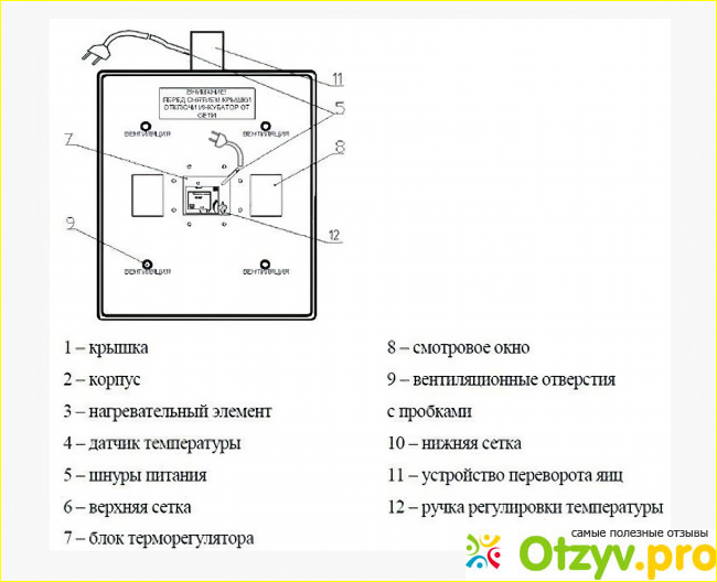 Ниже указана схема данного инкубатора и расположение всех его элементов.