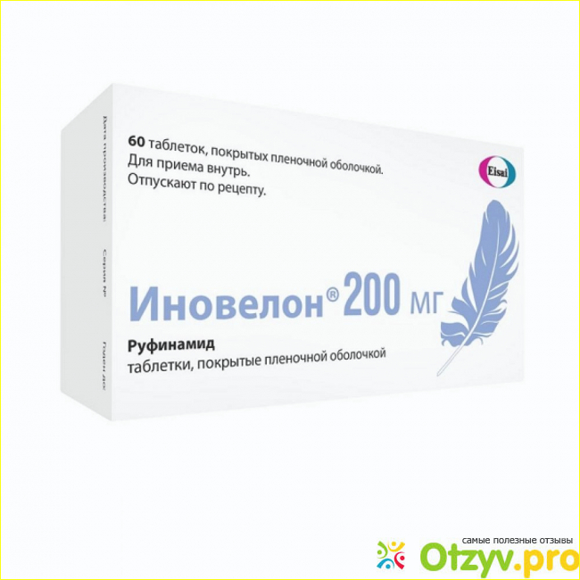 Схему терапии назначает только врач, или невролог, или предпочтительно эпилептолог, который как раз занимается этим делом. Давайте возьмем в качестве примера Иновелон, препарат для лечения эпилепсии. Он содержит активное вещество руфинамид в дозировке 400 мг, плюс имеются вспомогательные компоненты для лучшего усвоения активного вещества. Механизм действия вещества руфинамид заключается в снижении чрезмерной активности нейронов в головном мозге, уменьшении количества приступов эпилептических припадков.