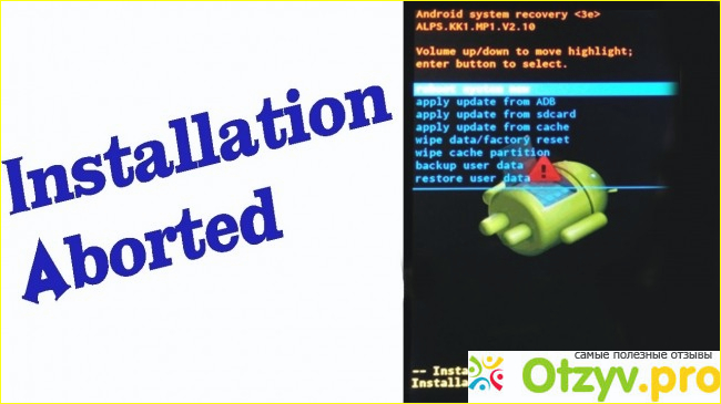 Если же проблеммы возникли при прошивке неофициальной версии ОС и появлении ошибки "Installation Aborted", то восстанавливать систему можно путем полной очистки устройства и повторной установки архива прошивки.