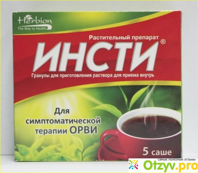 5 пакетиков находятся в небольшой картонной коробочке на которой можно узнать и всю основную информацию. Уже снаружи можно узнать всё об иизготовителе, полный список состава препарата, срок годности и как применять. Если что-то непонятно, то можно узнать нужное из подробной инструкции. Сами пакетики небольшого размера, на каждом имеется насечка для удобного вскрытия без ножниц. Так что открыть их сможет любой без каких-либо проблем. Инструкция по применению простая. Один пакетик необходимо пить один или два раза в день после принятия пищи. Средняя длительность приёма этих пакетиков составляет от 7 до 9 дней. Всё зависит от тяжести заболевания и назначения врача. Разводить этот растворимый чай лучше горячей или тёплой водой, но первый вариант предпочтительнее. По желанию можно добавлять подсластители, вроде мёда, малинового варенья или просто сахара. Если вы следите за лишним весом, то можно просто добавить таблетку подсластителя. Растворяется чай быстро и не оставляет каких-либо следов на посуде или осадков на дне кружки. В целом жидкость получается немножко мутная, но пахнет приятно с оттенками различных трав. Особенно ощущается привкус мяты, который хорошо помогает справиться с заложенностью носа. После того как выпьешь данный чай горячим, носовая полость избавляется от проотивной густоты и дышать становится легче. Горлу также гораздо проще и там снижаются болевые ощущения. Так что воздействие чая Инсти могу назвать очень приятным и полезным. А вот для снятия температуры этот чай подходит плохо. В этом плане он действует медленнее, чем любое простое, но эффективное жаропонижающее средство. В целом получаем отличное средство именно для лечения ОРВИ, различных простудных заболеваний с не очень тяжёлым течением, а также для борьбы с гриппом. Данный чай прекрасно помогает смягчить симптомы, справиться с небольшим ознобом, смягчить кашель, уменьшить или полностью убрать головную боль. Ждать от него, что он резко собьёт температуру не стоит. Это не ускоренный по-своему воздействию препарат, а средство которое помогает быстрее вылечить заболевание. Главное не забывать принимать его по утрам и вечерам, особенно незадолго до сна. В этом случае вы и не заметите, как болезнь будет протекать гораздо мягче и быстрее. Так что этот целебный быстрорастворимый чай однозначно советую к применению и всегда держать у себя в аптечке.