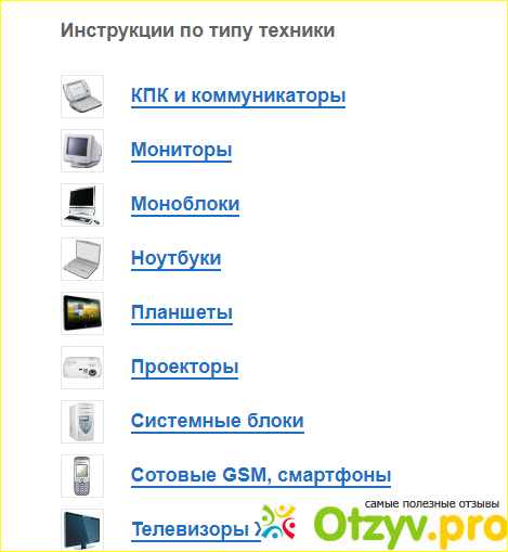 В правой колонке инструкции по типу техники. Там можно выбрать авто - мото технику, или бытовую технику, даже медицинскую технику.