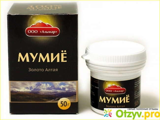 Я же вернулась в аптеку, но уже за алтайским мумие в виде мази. А купила мазь «Золото Алтая» от фирмы Альмар. По сути, это обычное природное мумие, просто уже очищенное от всяких примесей. За стограммовую баночку я заплатила триста сорок четыре рубля. Кстати, Альмар — единственная в России компания по производству очищенного мумие в натуральном виде.