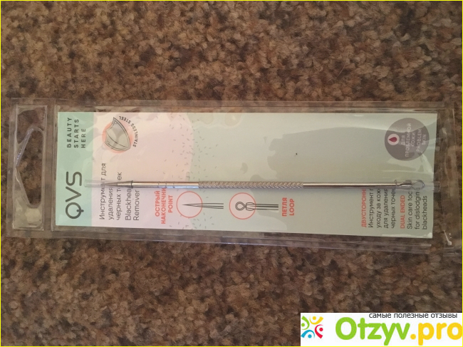 от компании, которая на торговой платформе раньше не была замечена, эта фирма “QVS”, из названия можно понять страну производителя данного товара о котором сейчас пойдёт речь, если по ценовой категории, то фирма держит рамки качество-цена и купит данный товар фирма предлагает от ста рублей, что считается по ценовой политики схожих инструментов приемлемой, если говорить, что есть и фирмы производящие товары схожей с данным и цена в розничных магазинах от пятисот рублей за штуку Если говорить об инстументе то он предназначен для удаления чёрных точек, но это не значит, что купив его нужно начинать искать точки и пытаться их выковарить данным предметом, потому что есть вы начнёте просто давить Вы будете царапать кожу, для его использования рекомендуется сначала распарить то место, где Вы собираетесь удалять чёрные точки, для того, чтобы правильно использовать инструмент рекомендуется посмотреть видео по данной тематики, которое можно найти без труда в сети интернет, но о фильтре информации полученной в интернете, но сейчас бы хотелось бы поговорить именно об инструменте о котором будет отзыв