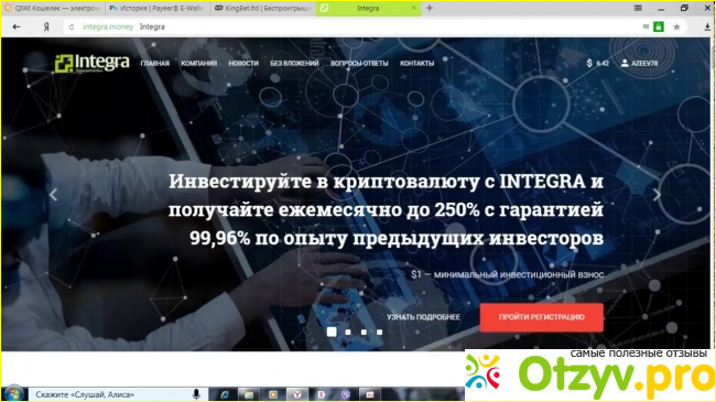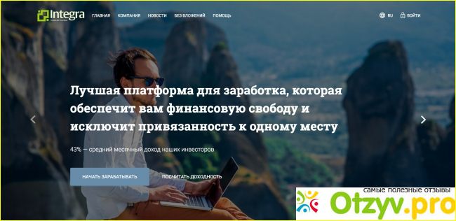Рассмотрим Integra.money. На первый взгляд довольно неплохой визуальный фон, шрифты радуют глаза, да и в целом не скажешь о том, что работа выполнена плохо.