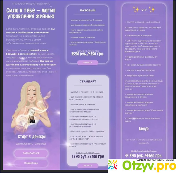Этот курс Мари выпускает уже не первый раз. Поначалу стоимость на ее интенсивы была достаточно дешевой на радость покупателей. Однако потом курс дополнялся новой информацией, различными техниками — и ценник постепенно повышался.