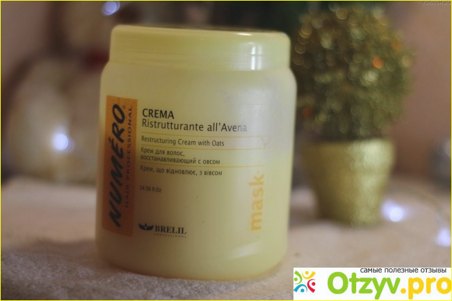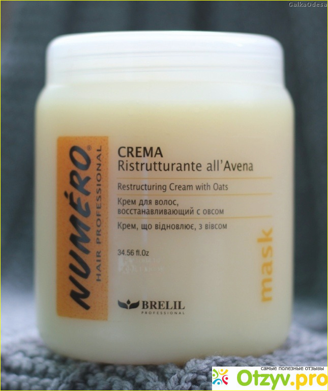 С маской для восстановления волос Numero Total Repair Mask с экстрактом овса я познакомилась уже давно, но по сегодняшний день она мне очень нравится и я периодически возвращаюсь опять ней. Маска Numero Total Repair Mask идеально справляется с сухими, не послушными и ломкими волосами, возвращает волосам блеск о как-бы оживляет практически безжизненные волосы. Данная маска относится к категории профессиональных восстанавливающих масок, но её можно использовать, как в салоне, так и обычный человек без труда может ухаживать за своими волосами в домашних условиях. Маска для восстановления проблемных волос Numero Total Repair Mask разработана итальянской торговой маркой Brelil и в своём составе содержит активный компонент - экстракт овса. В этом, казалось бы обычном злаке, содержаться очень ценные протеины, благодаря наличию которых, овёс обладает чудодейственным свойством очень интенсивно напитывать, а так же оказывать содействие в восстановлении повреждённой структуры волос. В результате воздействия на волосы специальной высокоактивной формулы масочка очень эффективно напитывает волосы полезными элементами, хорошо укрепляет их, в результате чего происходит предотвращение ломкости и сечения волос, они становятся более объёмными. В результате воздействия маски наши волосы будут очень красиво блестеть и смотреться довольно ухоженными. В применении маски Нумеро нет ничего необычного и сложного. На вымытые влажные волосы нужно нанести маску и распределить её по всей длине волос лёгкими круговыми движениями. Затем оставить маску для воздействия на волосах на три-пять минут и после очень тщательно смыть крем с волос тёплой водой.