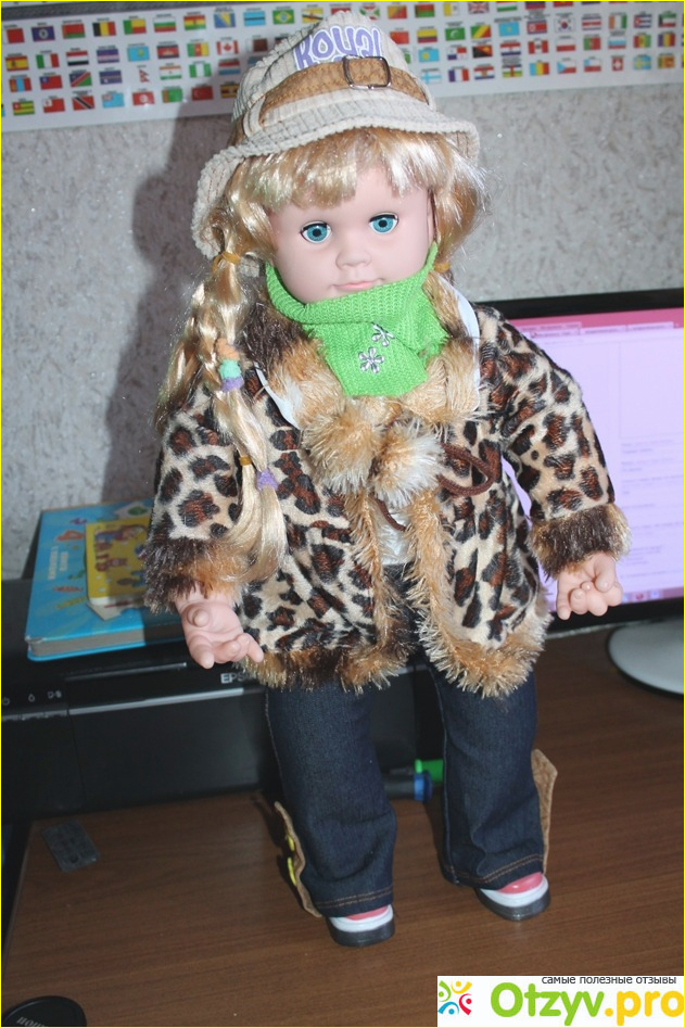 Кукла оказалась очень интересной и она не просто кукла, а эта кукла умеет разговаривать, петь песни, рассказывать стихи, сказки. И что самое интересное она умеет отвечать на вопросы. Вместе с куклой шла брошюрка с полным описанием того, что кукла умеет делать. Как правильно задавать ей вопросы. Кукла работает на батарейках, и она легко включается простым нажатием ей на ручку. А на другой ручке установлен регулятор громкости. Кукла Ксюша не просто разговаривает, она при этом шевелит губами, поворачивает голову, моргает глазками. И даже может спать, при этом кукла закрывает глаза. Но мне больше всего понравилось то, что когда куклу переворачиваешь вверх ногами, она произносит такие фразы «Ух ты кажется, я попала в страну, где все наоборот», «Ой-ой-ой кажется, у меня закружилась», Мне неудобно так, подними меня». Кукла действительно очень интересная, забавная и трудно найти ребенка, которого бы она не привлекла. С ней ребенок может не только играть, но и развиваться, учить стихи и песни. Чем мы сейчас и занимаемся. Единственным минусом для нас оказались ее волосы. Они немного не аккуратно наклеены, а в целом очень довольны игрушкой.