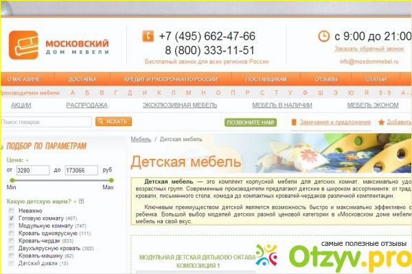 Интернет- магазин специализируется на детской мебели, в том числе и индивидуальные заказы. Здесь вы можете найти любую интересующюю вас детскую мебель в любом формате, дизайне, возрастной категории и приемлемой цене. Кроме того здесь можно прочитать и отзывы от покупателей, которые пользуются этой мебелью уже давно, и получить квалифицированную консультацию от менеджеров компании. Заказ можно сделать как по телефону, так и лично прийти по нужному адресу, и просмотрев товар купить сразу. В этом магазине представлена качественная мебель из Украины, России, Польши, Турции, Китая, Италии, Германии. Вся мебель поделена на четыре категории, что тоже очень удобно. Мебель для новорожденных (включает в себя манежи, ходунки, шезлонги, колыбельки, стульчики для кормления, комоды-пеленаторы) и рассчитана на возраст 0-3 года; для малышей 3-6 год: кроватки, комоды и т. п; для детей 3-13 лет; молодежная мебель 13-20 лет. Также кроме мебели там можно купить коврики, спортивные стенки, постельное белье.