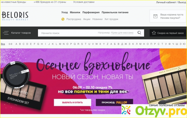 Я не могу его назвать слишком продвинутым или красивым. Скорее я бы назвала его достаточно простым, что и делает его в моих глазах более востребованным. Открывая страничку этого интернет-магазина сразу видим самые популярные акции и предложения от магазина, которые приходят совместно с некоторыми брендами, представлены на сайте.
