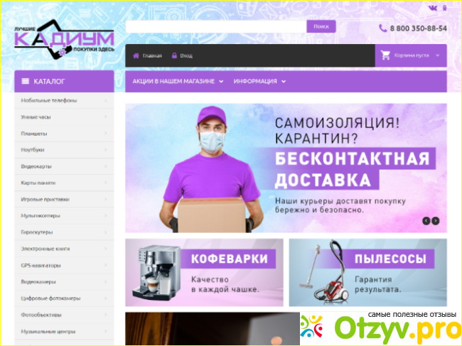 Интернет-магазин Кадиум является надежным поставщиком широкого ассортимента электроники и бытовой техники. У них представлены 25 различных рубрик товаров, начиная от современных мобильных телефонов, планшетов и компьютеров, и заканчивая функциональными кухонными комбайнами, кофеварками и пылесосами. Они гордятся тем, что у них есть акции, скидки, распродажи, а также специальные предложения, чтобы каждый клиент смог выбрать именно то, что ему нужно.