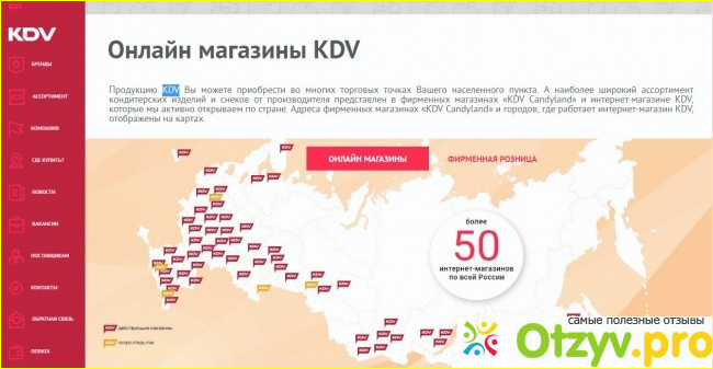 Интернет-магазин продукции KDV действует в более пятидесяти городах по всей России и еще несколько готовятся к открытию.