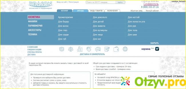 Интернет-магазин krason.ru мне приглянулся своим большим ассортиментом. Здесь представлено довольно много известных и популярных брендов. Я делала заказ на этом сайте несколько раз. Посылки не всегда приходили во время. Но для меня это не принципиально. Главное что все позиции были на месте.
